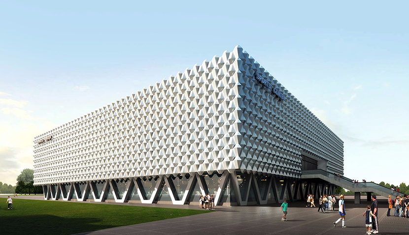 我國冬奧會冰球運動的舉辦場館——北京順義城南體育館,由北京艾爾豪斯膜式技術(shù)有限公司設(shè)計建造,其占地總面積約達(dá)9萬平方米,由綜合體育館、體育場和室外運動場地組成,用地合理緊湊,造型方正,體育館立面采用棒槌型六面體基本元素,按順序排列,形成立面獨特風(fēng)格,現(xiàn)已基本完工投入使用。